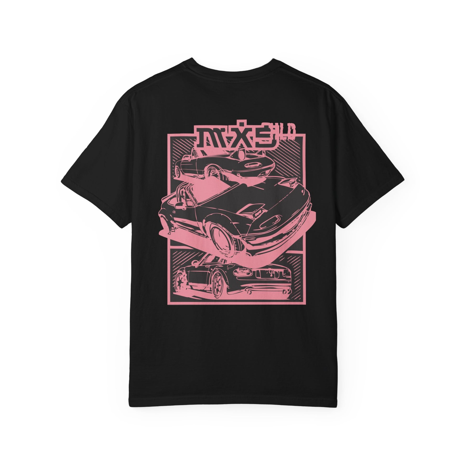 A streetwear-inspired unisex garment-dyed T-shirt featuring colorful touches reminiscent of the MX5 Miata. The relaxed fit and classic crew neckline make it perfect for casual or semi-formal settings, ideal for those who appreciate unique and vibrant designs. Suitable for adults, this T-shirt is a great choice for car enthusiasts, streetwear lovers, and those who seek to make a statement with their clothing. Perfect for gifting on birthdays, holidays, or special occasions.
